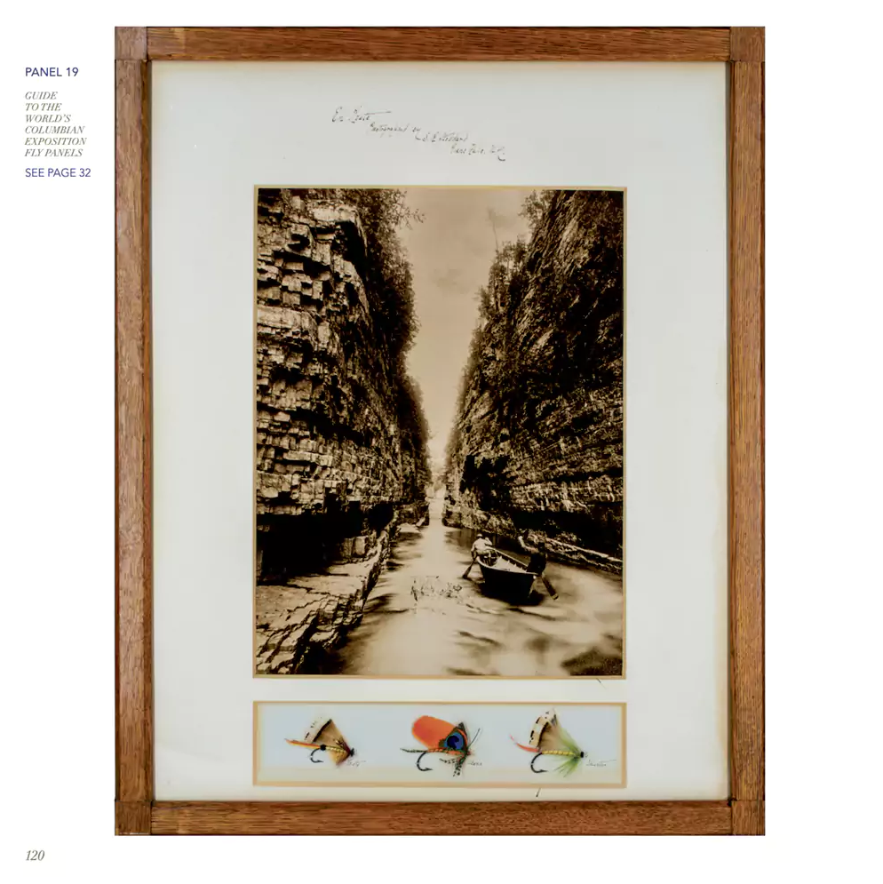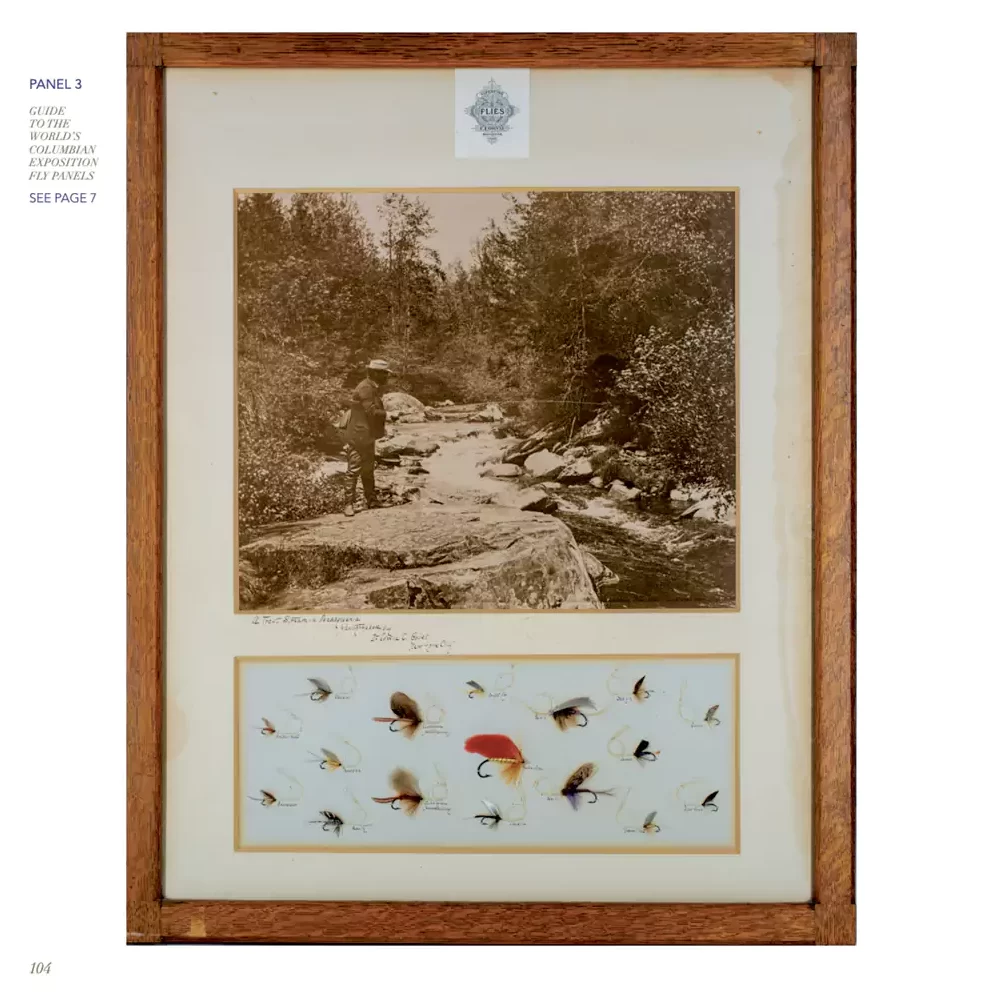 The treasured Orvis fly collection from the American Museum of Fly Fishing in Manchester, Vermont is prominently featured, including the historic World’s Columbian Exposition fly panels, as well as a newly discovered complete collection of hundreds of fly samples used in the original Orvis fly tying operation.